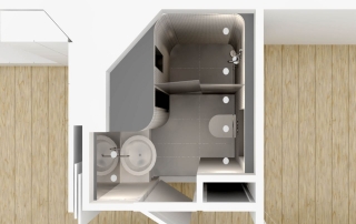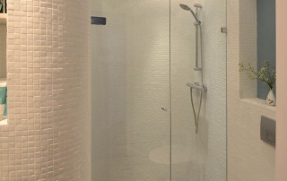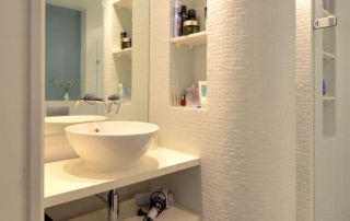 - De badkamer kreeg een nieuwe indeling. Het leidingwerk werd in de vloer weggewerkt en al het sanitair en tegelwerk werd vernieuwd.