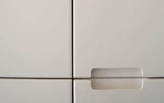 - In de woonkamer werd een aantal kasten gerealiseerd.