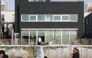 was er eenefficiënter en economischer proces mogelijk. In eerste instantie lagen de ontwerpen voor de woningen ook dicht bij elkaar, maar in de loop va het proces werden de beide ontwerpen steeds individueler ingevuld. Met name de keuze van een totaal unieke traploop in elke woning heeft uiteindelijk