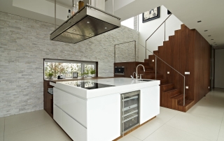 Op het Rieteiland-Oost krijgen particulieren de mogelijkheid hun eigen, vrijstaande huis te bouwen. De kavels op dit kunstmatige eiland, zijn voor Amsterdamse begrippen royaal. Kavel 34 ligt direct tegenover het Diemerpark. Het weidse uitzicht is in het ontwerp benadrukt door toepassing van zeer grote glaspuien op de begane grond. De overgangen tussen binnen en buiten zijn op een aantal plekken verzacht door overstekken. De verdieping is vormgegeven als een gesloten houten volume, dat lijkt te zweven. De ruimten hier zijn royaal van maat en meer naar binnen gekeerd. Het ruimtelijke concept van de woning wordt door het interieurontwerp versterkt.